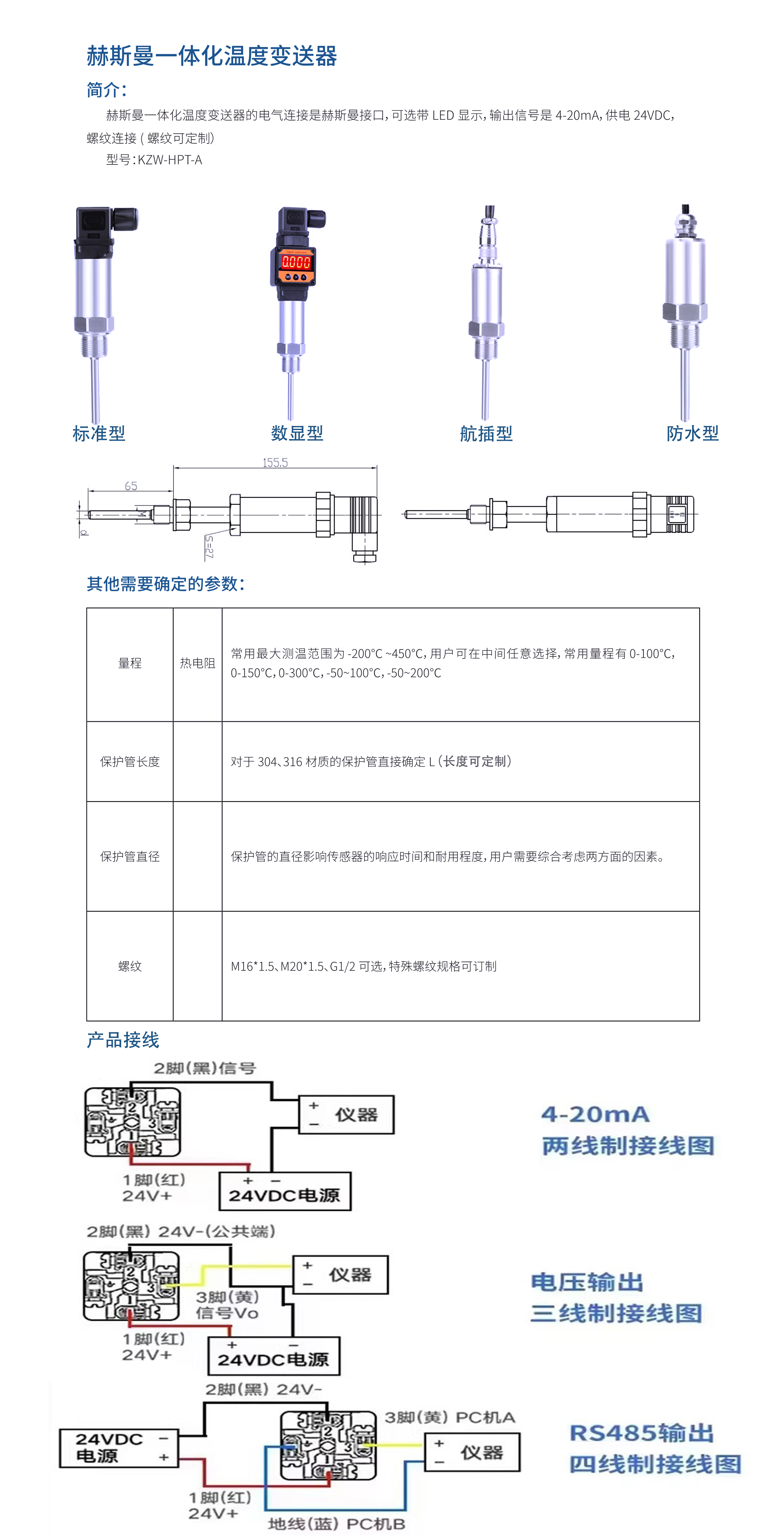 | KZW-H | 规格代码 | 赫斯曼温度传感器 | |||||